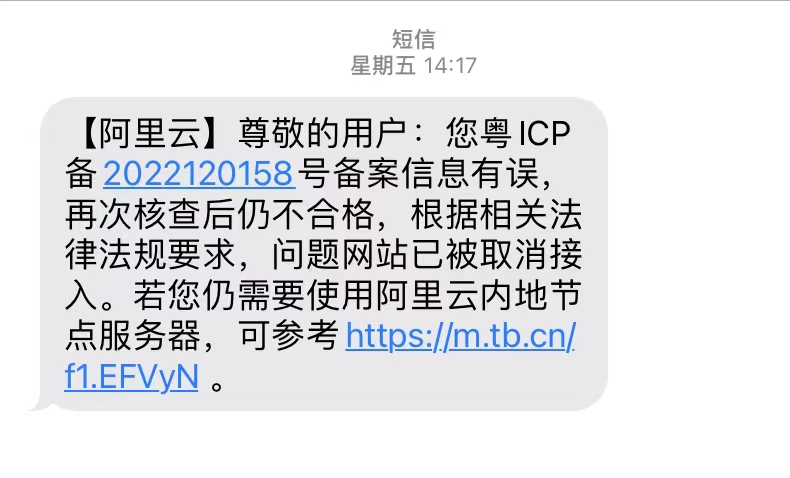 收到網(wǎng)站備案核驗(yàn)信息需要及時(shí)處理,將正確信息提交審核通過(guò)即可。如果不及時(shí)處理,備案號(hào)就會(huì)被注銷,導(dǎo)致域名無(wú)法訪問(wèn),如下圖: