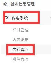 1.進入后臺,點擊左側(cè)菜單欄中的【內(nèi)容系統(tǒng)】,點擊【內(nèi)容管理】