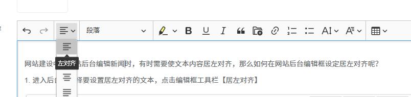 1. 進(jìn)入后臺(tái),選擇要設(shè)置居左對(duì)齊的文本,點(diǎn)擊編輯框工具欄【左對(duì)齊】