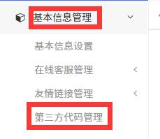 2.進(jìn)入后臺(tái),點(diǎn)擊左側(cè)菜單欄中的【基本信息管理】,在里面找到并點(diǎn)擊【第三方代碼管理】