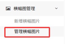 1.進(jìn)入后臺,點擊左側(cè)菜單欄中的【橫幅圖管理】,找到并點擊下級導(dǎo)航【管理橫幅圖片】