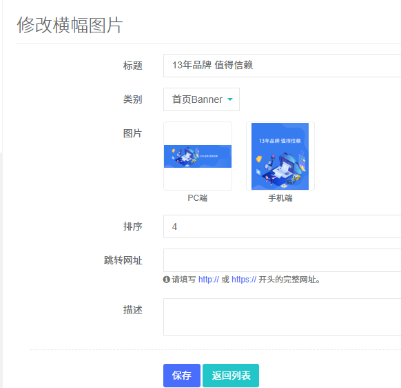 3.進(jìn)入【修改橫幅圖片】,【PC端】,【手機(jī)端】,替換相應(yīng)的圖片(新圖片尺寸與原圖尺寸保持一致)